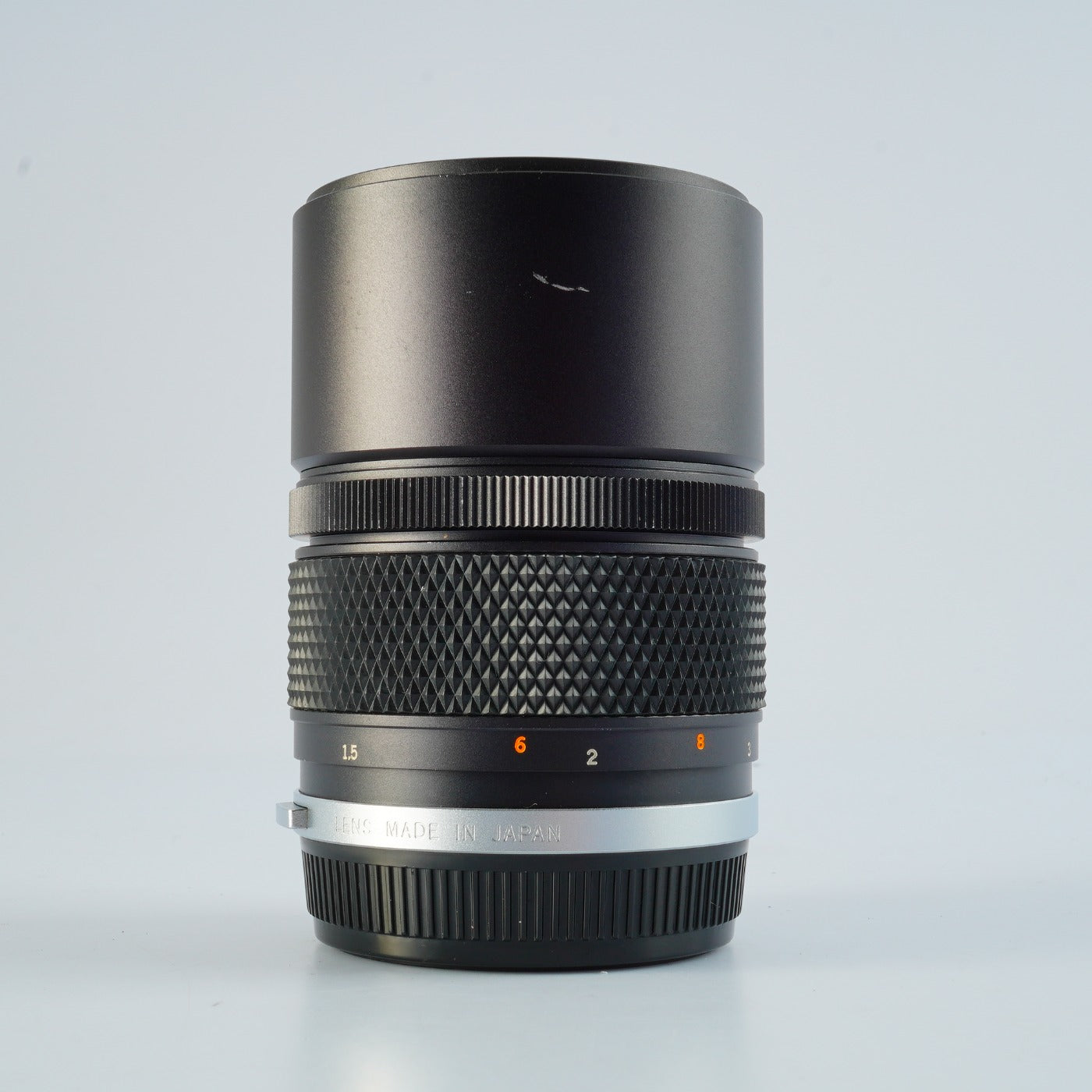 Die Funktionalität ist einwandfrei, jedoch weisen die Linsen Schimmel, Trübungen, Abplatzungen des Balsams, Kratzer usw. auf, was die Fotografie beeinträchtigen kann. Auch das Gehäuse weist deutliche Kratzer und abblätternde Farbe auf.